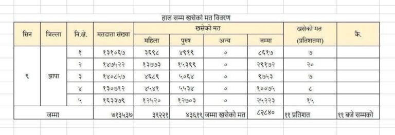झापा क्षेत्र नम्बर ५ मा हालसम्म खसेको मत